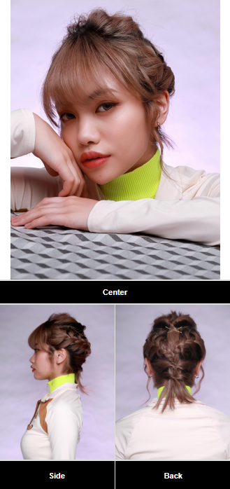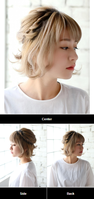 くるりんぱと編み込みを重ねてつくった、肩上3cmのミディアムボブ×ハイトーンアップスタイル風アレンジ。