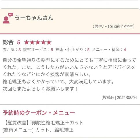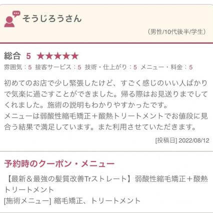 実際にご来店されたお客様のメンズ縮毛矯正の口コミ