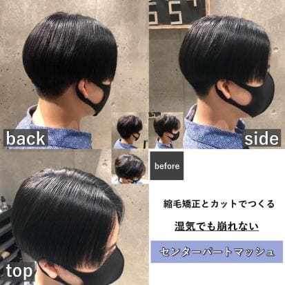 ・縮毛矯正とカットでつくる湿気でも崩れないセンターパートマッシュ