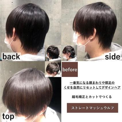 縮毛矯正で自然なストレートにしつつカットでマッシュウルフに!