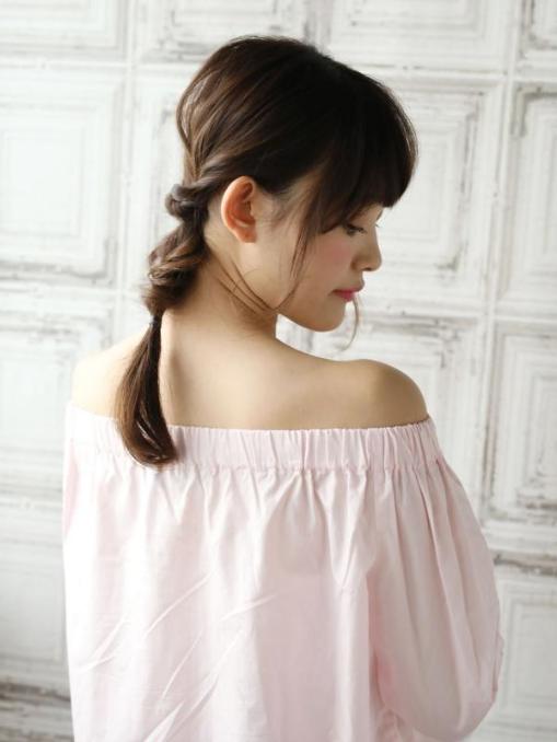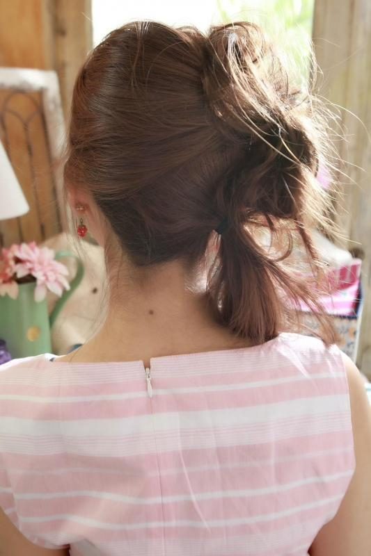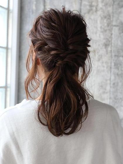 髪の毛をルーズに引き出すことで今っぽいヘアアレンジになります。