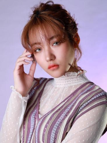 セミロング簡単ヘアアレンジ【前髪なし×アップスタイル】