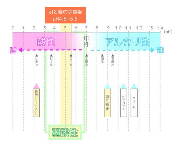 つまり髪は弱酸性の状態の時「最もダメージに強く傷みにくい」健康で綺麗な状態なんです!