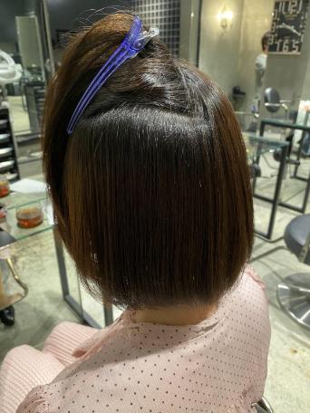 毛先は数センチカットさせていただけた事もありかなり良い状態に仕上がることができました。今後はヘアケアと縮毛矯正とカラーの仕方を間違わなければ常にアイロン仕立てのような状態をキープする事ができるようになります。