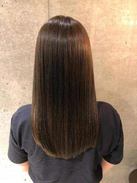 中間、毛先はトリートメントでケアも必須になりますので縮毛矯正とトリートメントで化学的に艶のあるストレートにしていきます。