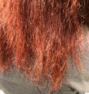 もう一つの髪の質感の方は確かめるのは簡単で髪を一回濡らします。その時にビビり毛になっていると疑わしい部分がモズクの様にとろっとしているとビビり①の可能性が高いです。