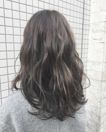 カラーで透明感を出しつつ、ふんわりとエアリー感の出るコテで巻いたようなパーマスタイルに仕上がりました。