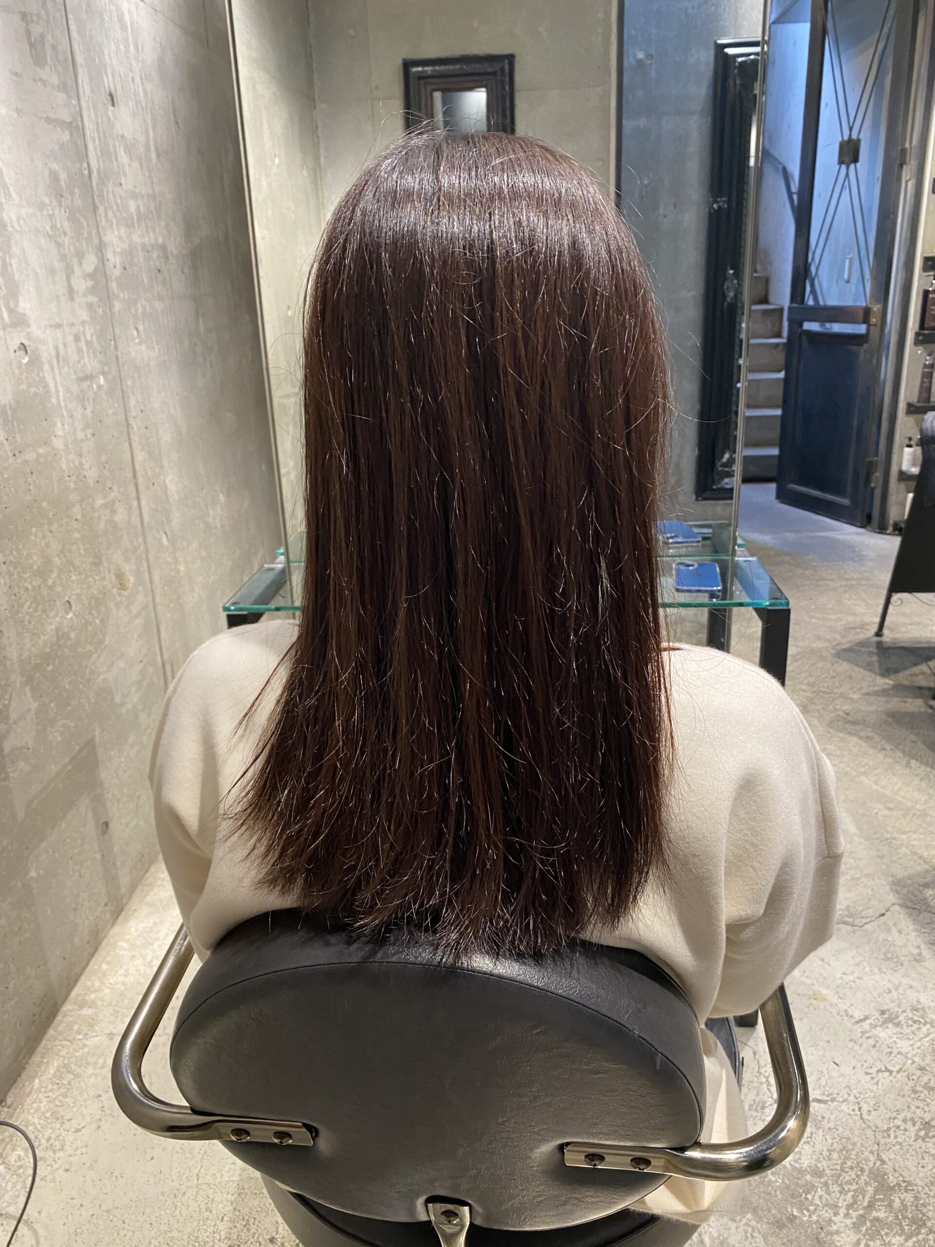 硬い髪はストレートになり辛く、なったとしてもペタッと重くなってしまうことが多いのですが、ふんわりとした軽さを残しつつ自然なストレートスタイルに仕上げることができました。