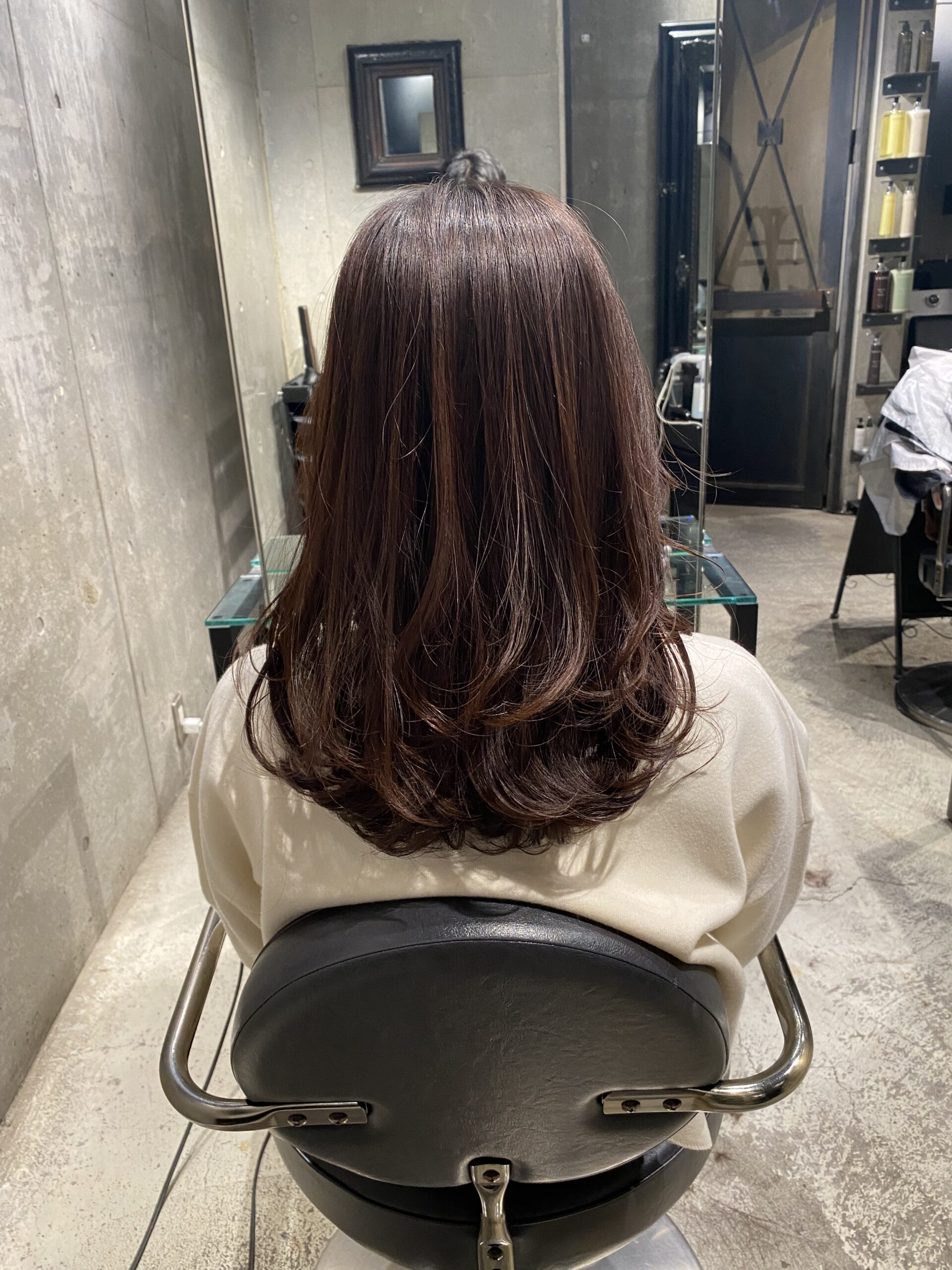 艶と丸みが出るようにストレートからのワンカールのパーマがしっかりかかりました。