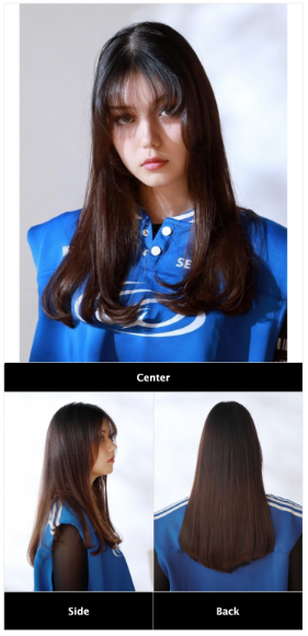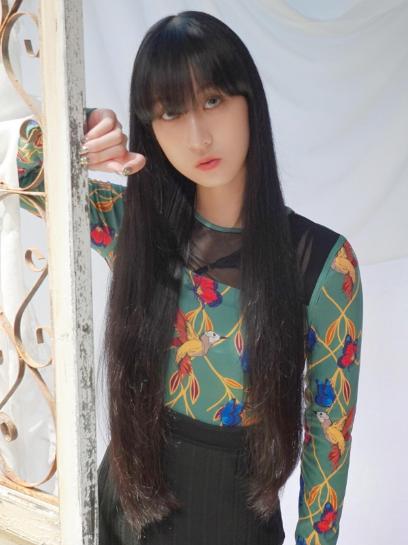 前髪なしのロングヘアは、大人っぽくクールな印象になります。