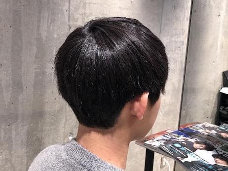 襟足は低めの刈り上げでサイドは耳に少しかかるくらい