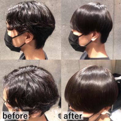 縮毛矯正で前髪が綺麗に下ろせるマッシュヘアに大変身!!