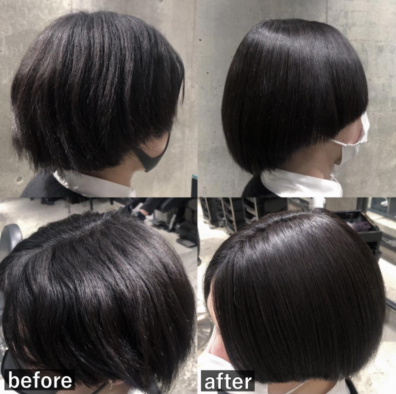 こちらも弱酸性縮毛矯正でつくるナチュラルストレートマッシュボブです!