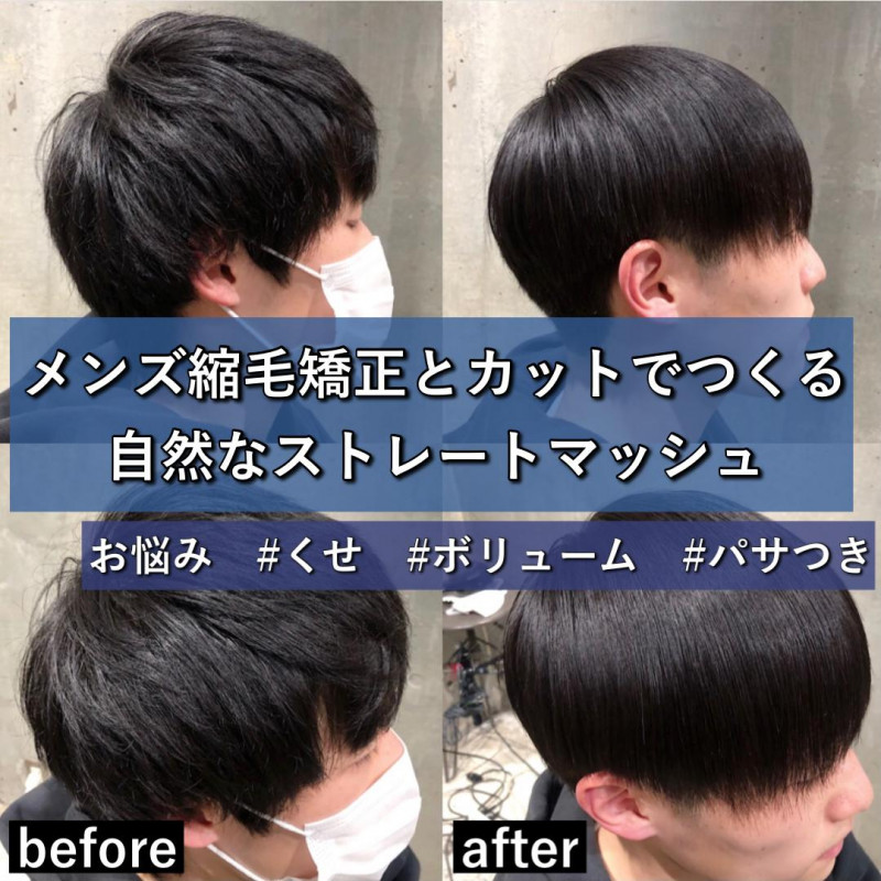 【人生初縮毛矯正】メンズ縮毛矯正とカットでつくる自然なストレートマッシュ◎