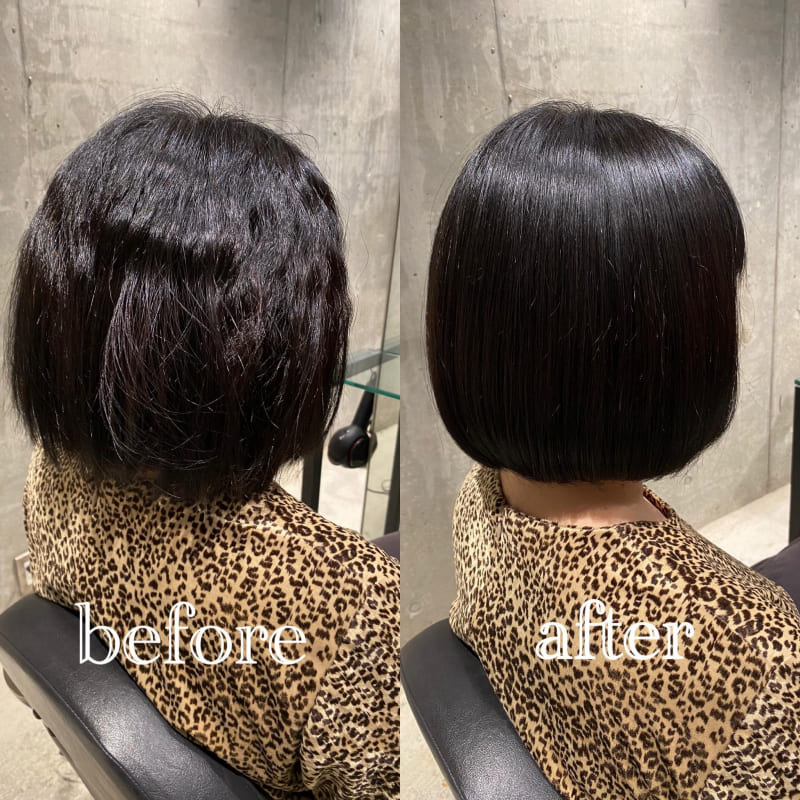 大切なのはくせの強さに対して負担を最小限に抑える事ができていて且つくせを伸ばせる薬剤を使用できているかというところに仕上がりがかかってきます。