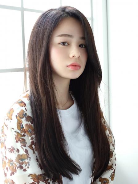 センター分け前髪で韓国風にも! 清楚な黒髪ロングストレート