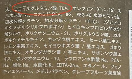 ↓例えばエノアの弱酸性シャンプーの場合はアミノ酸シャンプーなので、アミノ酸系洗浄成分の「ココイルグルタミン酸TEA」が最初に書かれていますね!
