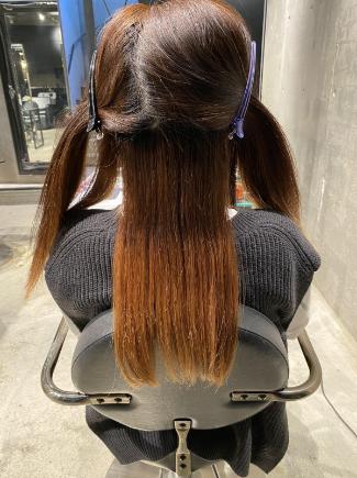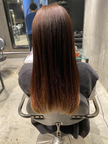 ダメージを抑えながら縮毛矯正をかけることで自然な艶のあるストレートになります。