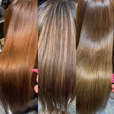 また仕上げに髪質改善トリートメントを行う事で更なるダメージ補修と髪のダメージや老化の原因となる不純物を除去し、髪が傷みにくい環境づくりをしていきます。