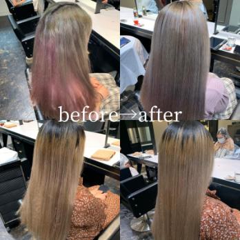 ハイダメージ毛、ブリーチ毛のビフォーアフターです!
