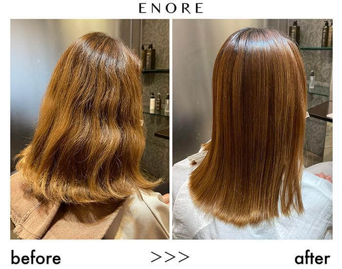 エノアでは「栄養補給効果」「保湿効果」を高めたオリジナルの「弱酸性縮毛矯正」を行なっています。そこで、実際に来ていただき弱酸性縮毛矯正の施術をしたお客様の髪の仕上がりをご紹介しますね!