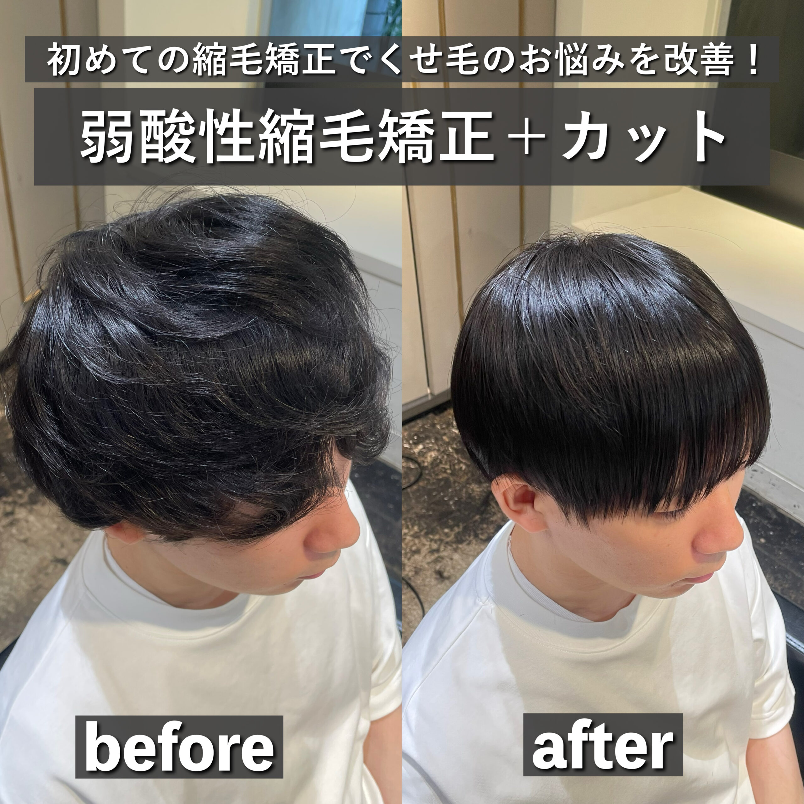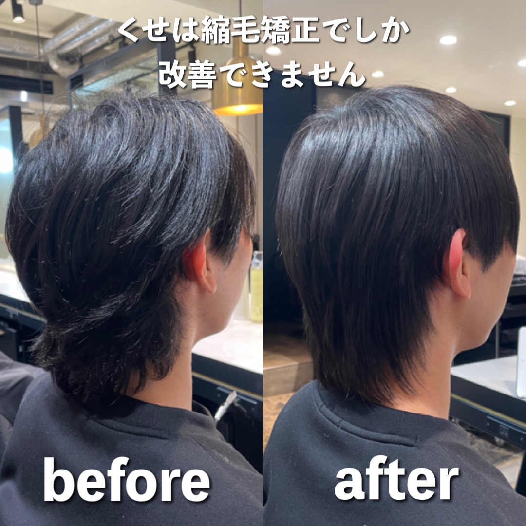 などのお悩みが出ますが縮毛矯正で改善できて扱いやすく綺麗なシルエットをつくることができます!