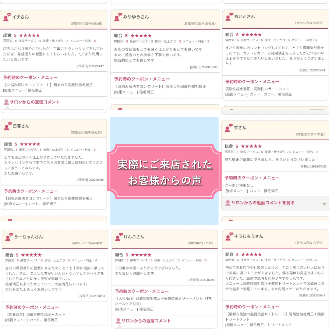 毎月100人以上の縮毛矯正をしている経験や実際にお客様から多く聞かれる悩みなども踏まえて