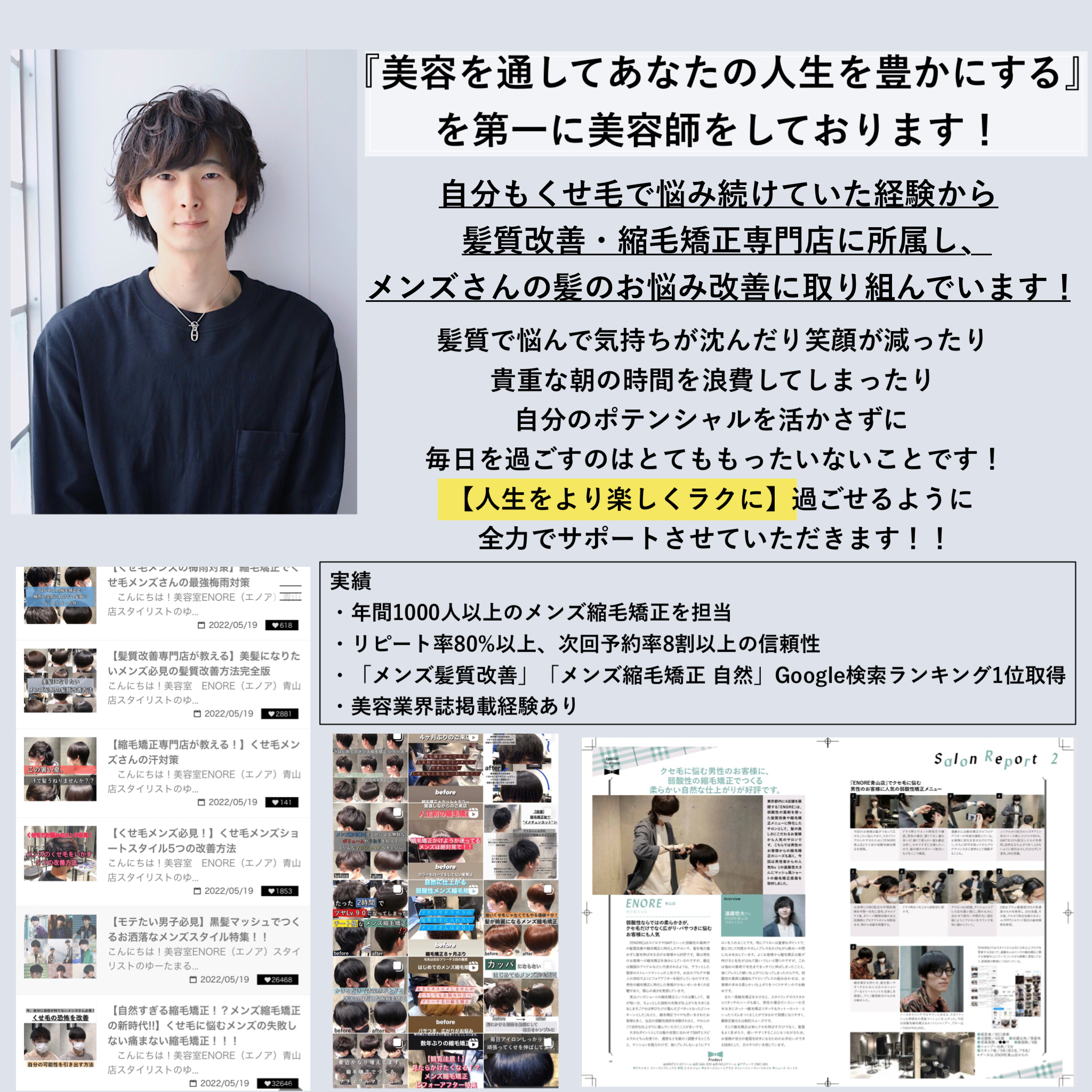 メンズ縮毛矯正に関することや疑問なども網羅的に発信していきます!