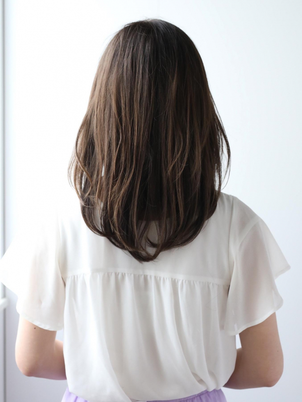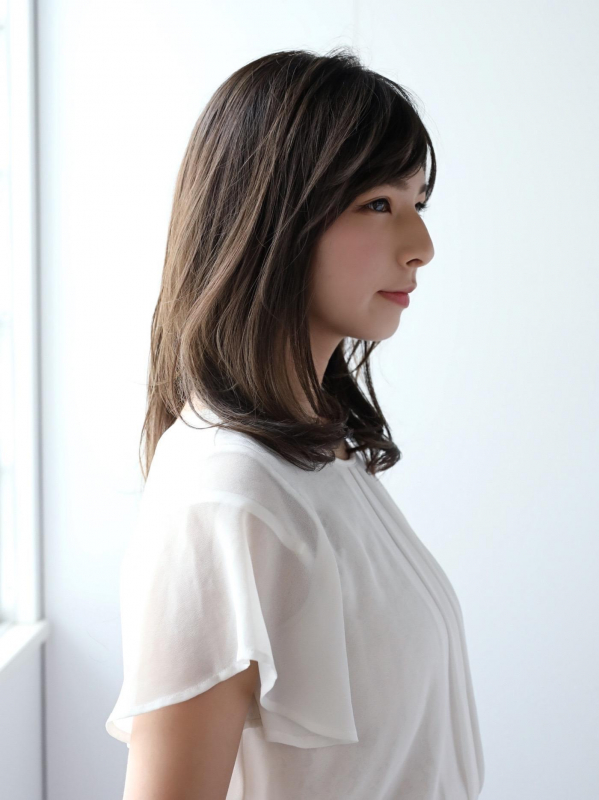 ツヤ髪でしっとりした雰囲気を出しつつ、長すぎないセミロングで大人可愛い髪型に仕上がります。
