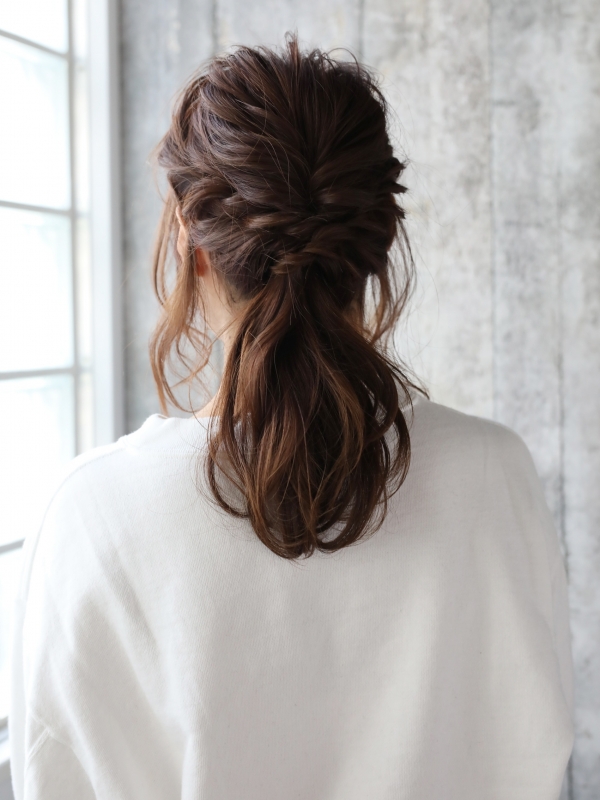 大人女子は、トップや編み込み部分をほどよく崩して、こなれ感を出すのがおすすめ。