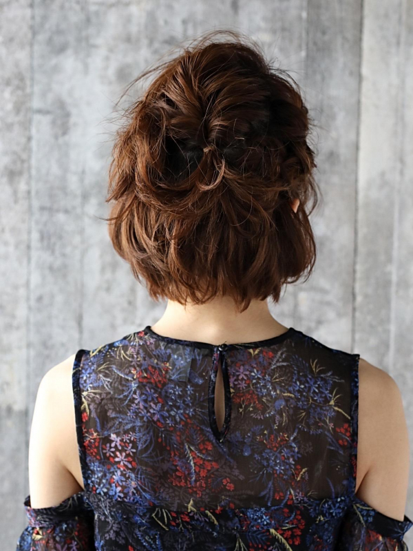 短めボブでもできる、きれいめボブのハーフアップアレンジ。