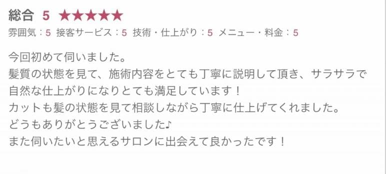 ですので、くせの強さやダメージ合わせて施術することができるので髪への負担も少なくすることができるので自然な仕上がりになりやすいです。