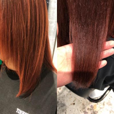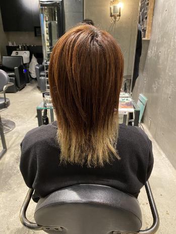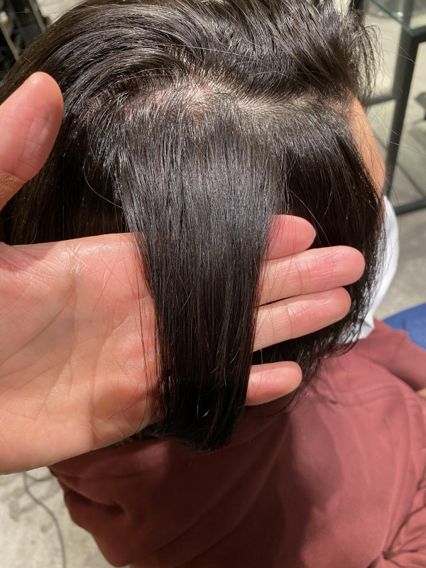 毛先3cmが特にダメージが進行していたので薬液の還元濃度とトリートメント量を細かく調整し綺麗に仕上がりました。