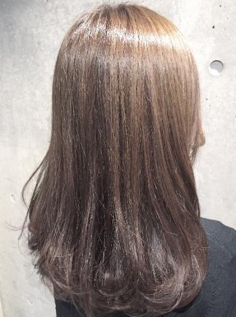 グレージュは、そのまま入れてしまうと暗くなってしまいがちの色なんです。そのイメージを消した明るめのライトなグレージュカラー。