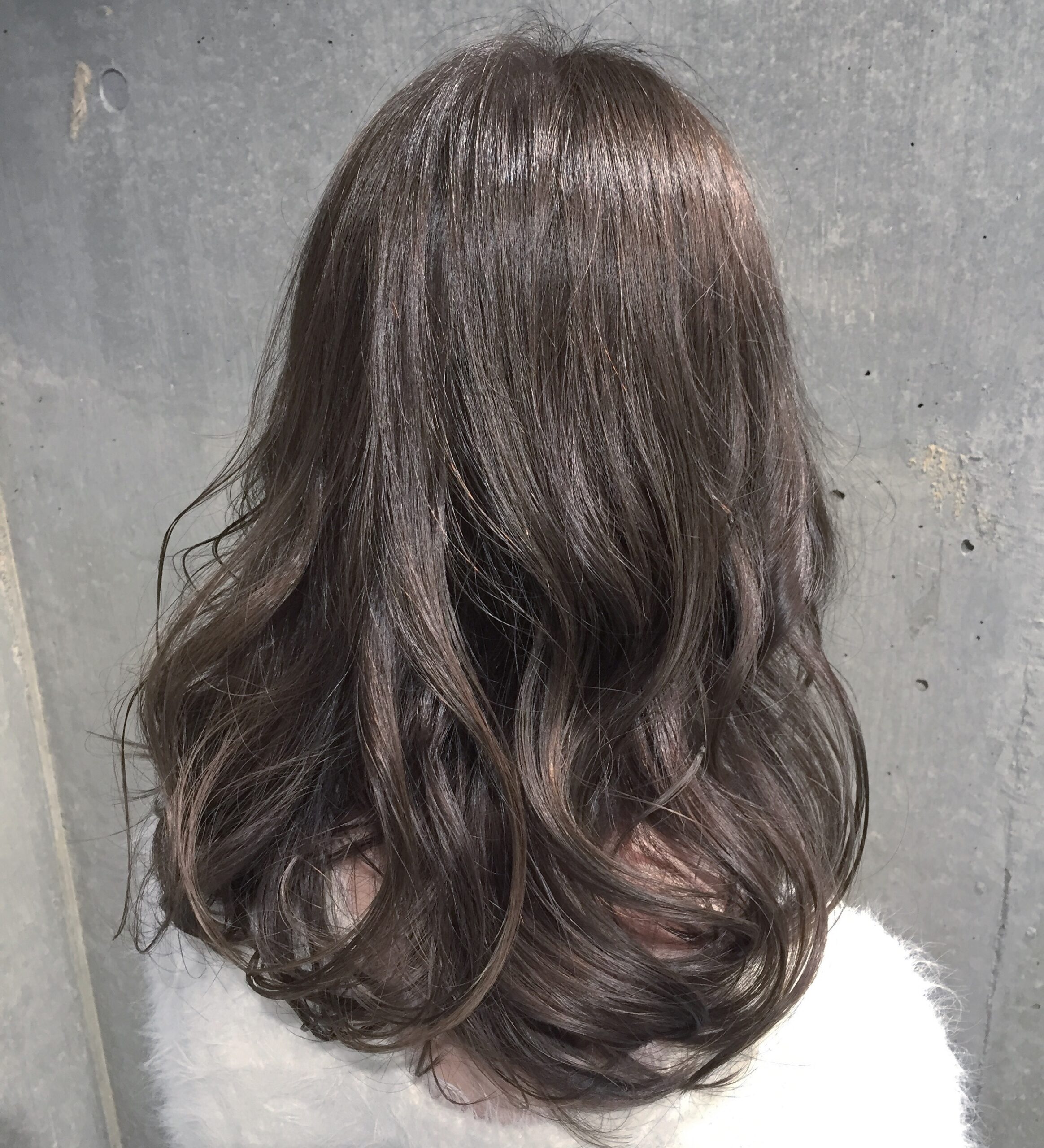 王道のグレージュカラー。巻き髪風デジタルパーマと組み合わせるとより立体感が増します。ブリーチを一切使用せずにできるカラーなのでダメージが気になる方など特におすすめです!