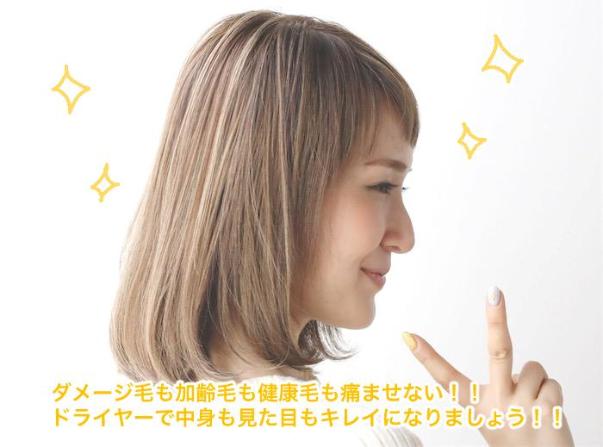 この様にドライヤーは髪にダメージを与えてしまいます。一回ドライヤーを使用しただけで深刻なダメージを与えてしまう事はないですが、ほぼ毎日ドライヤー使いますよね(>人<;)ほんの少しのダメージが毎日どんどん髪に蓄積されていくんです。大きなダメージへと繋がっていきます。せっかく美容院で髪を痛めないようにして、綺麗を保っても毎日のホームケア次第で髪は痛んでしまうんです。そう考えると、ドライヤーってホームケアの中で、かなり大切なポイントなんです!