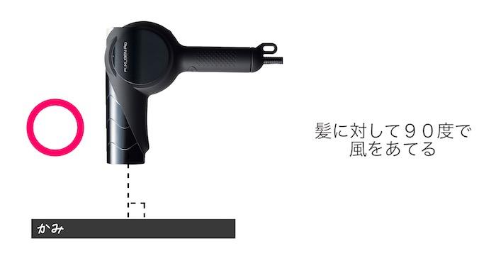 ・髪の毛に直面させる(髪に対して90度にあてる)