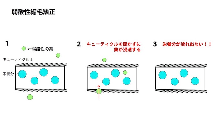 弱酸性のお薬を使うと髪のキューティクルを開く事なく、縮毛、カラー、パーマをする事が出来る!だから、髪の中の栄養分の流出を最小限に抑え、髪のキレイを保ったまま施術出来るんですね!髪質改善にうってつけのメニューなんです☆