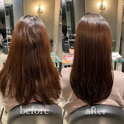 弱酸性縮毛矯正+髪質改善トリートメント(TRホームケア付き)22550円→19000円+指名料1100円
