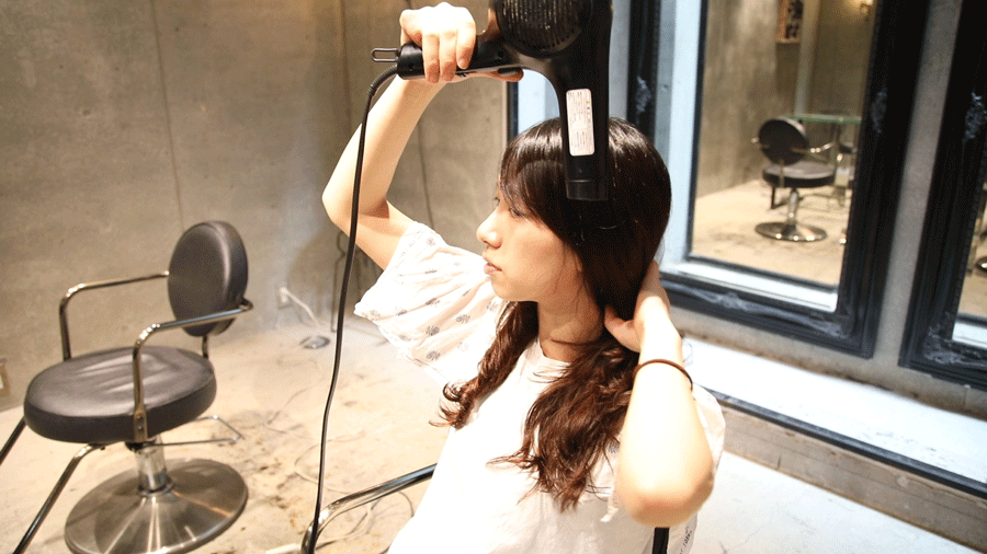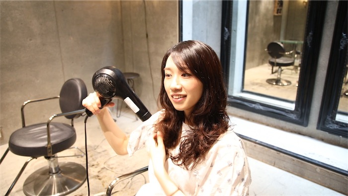 先ほどの手順をもとに、実際にモデルさん自身で乾かしていただきました!文字だとなかなか分かりづらいかと思いますので、是非動画でチェックしてみて下さい!