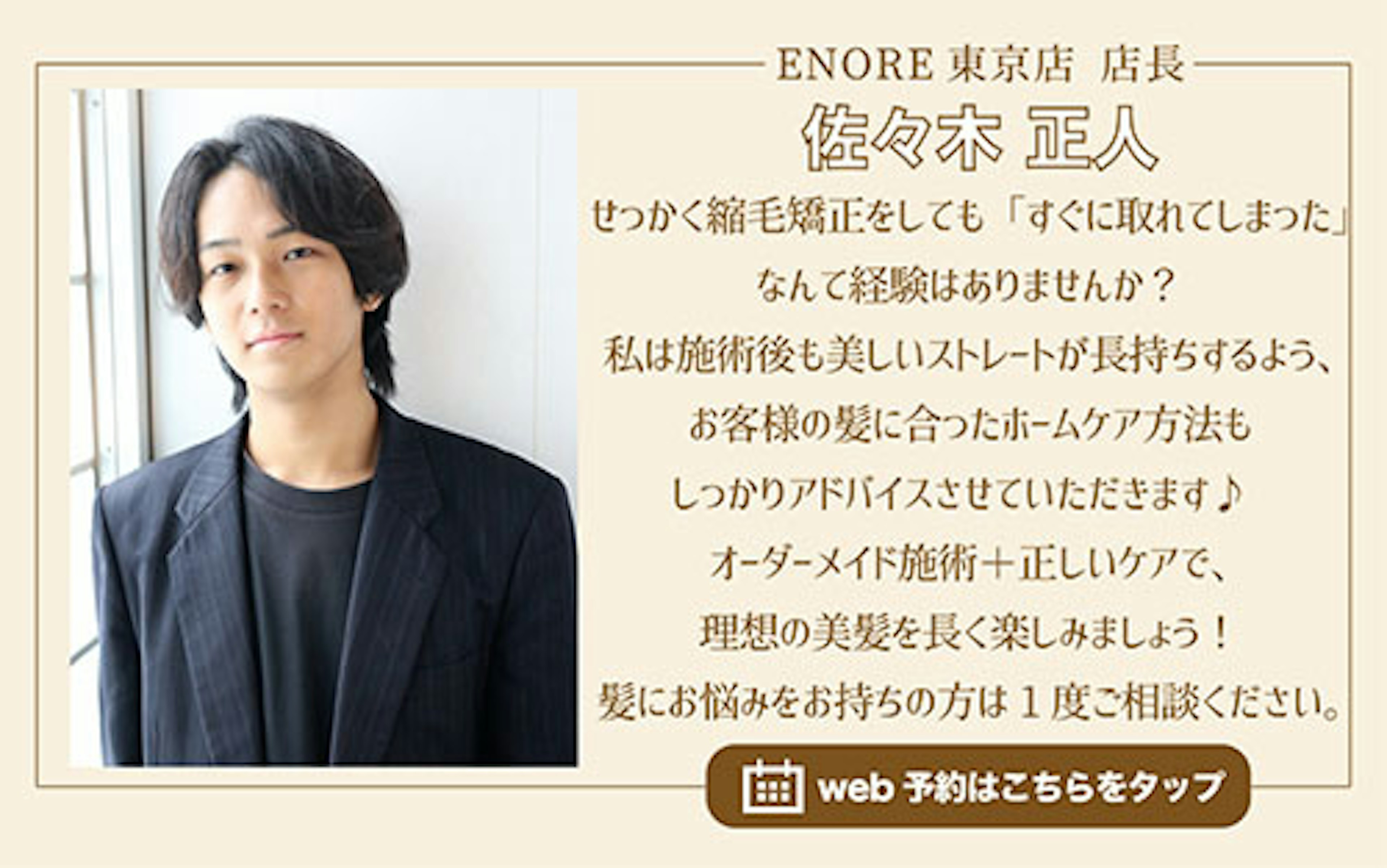 こんにちは!髪質改善と縮毛矯正の得意な美容院ENORE(エノア)東京店店長佐々木です!