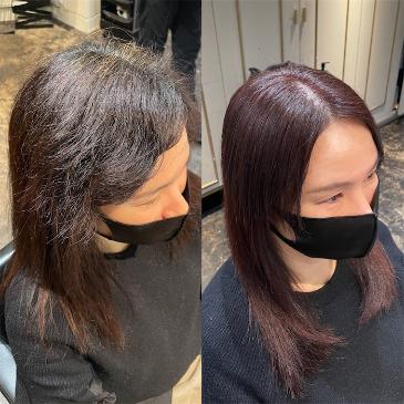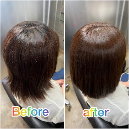 ・同時に出来るから楽チン・ダメージが最小限に抑えられるので、カラー持ちが良い・自然なツヤとしっとりまとまる髪・縮毛をして2ヶ月後も髪の手触りも最高の状態を保てる・頭皮や髪と同じ弱酸性。縮毛、カラーをした後も痛みにくい髪づくりが出来る・他では感じられないもっちりと柔らかい手触りが手に入る