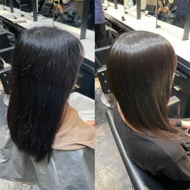 特にダメージレスで髪の内側と外側どちらも綺麗に出来るのが嬉しいですね。「カラーして、クセも一緒に綺麗に伸ばして、綺麗でおしゃれな髪型をしたい!」そんな方に人気のメニューです。