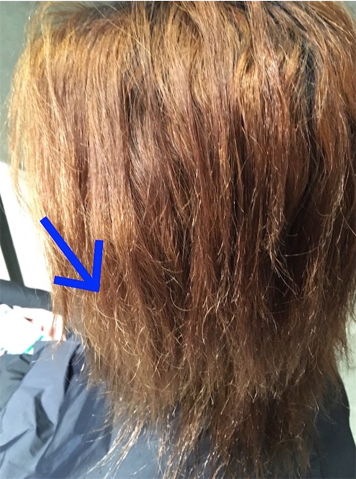 (↑「ビビリ毛」この方の場合、毛先のチリつきが特にひどい)