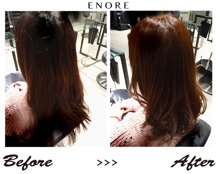 エノア「弱酸性縮毛矯正+弱酸性カラー」実際の仕上がり集