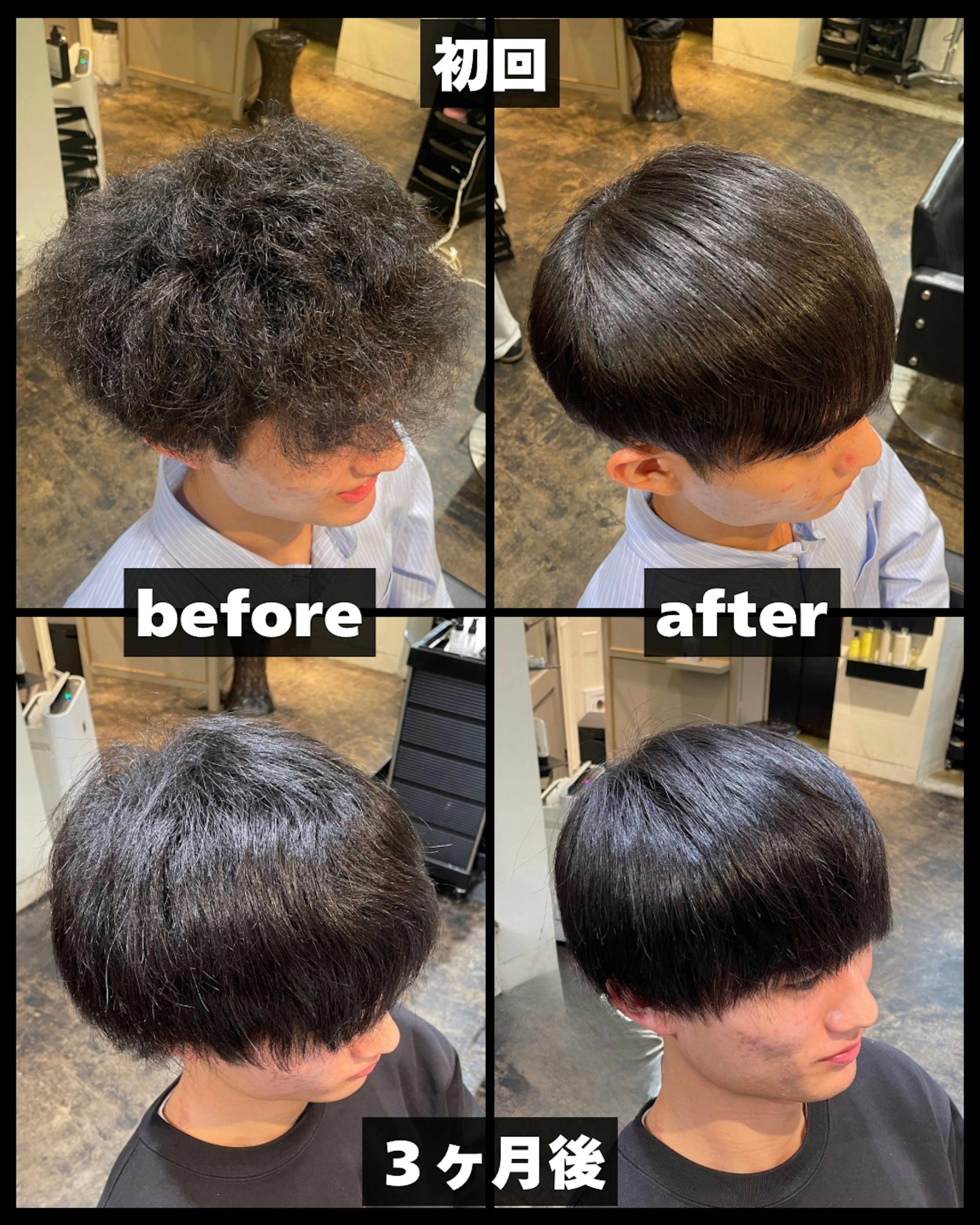 3ヶ月来店でのメンズ縮毛矯正ビフォーアフター