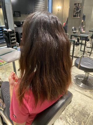 ですが、まだ毛先には前に縮毛矯正がしっかりと残っているので今後も定期的なトリートメントとホームケアは必須になります。