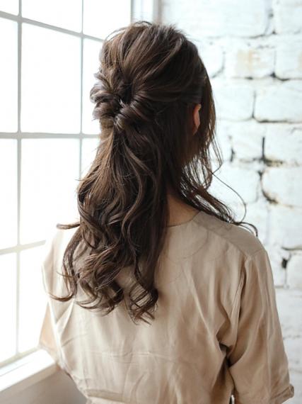 ハーフアップにした髪を崩すだけの簡単アレンジ。