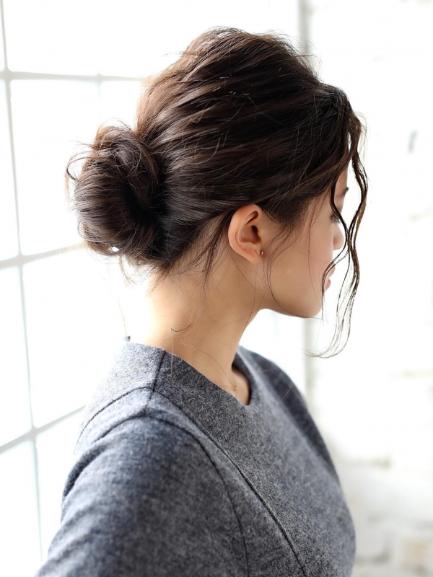 ゆったりしたくるりんぱと、うなじに少しかかる毛先が好バランス!