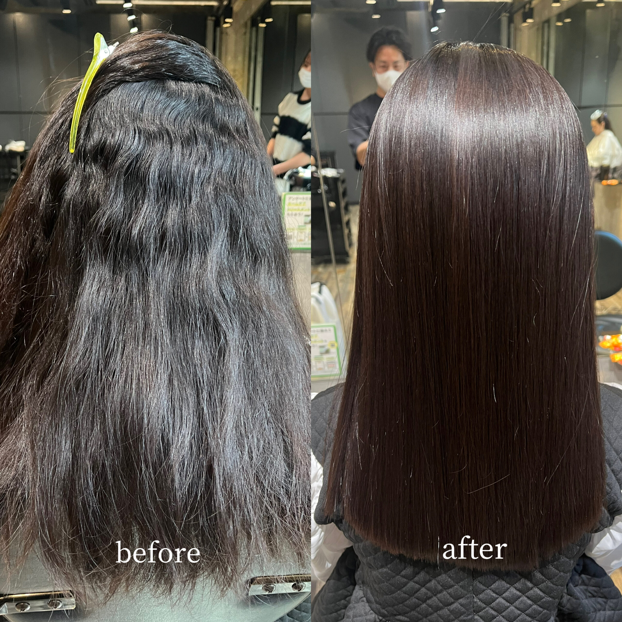 弱酸性縮毛矯正をかけたお客様before after